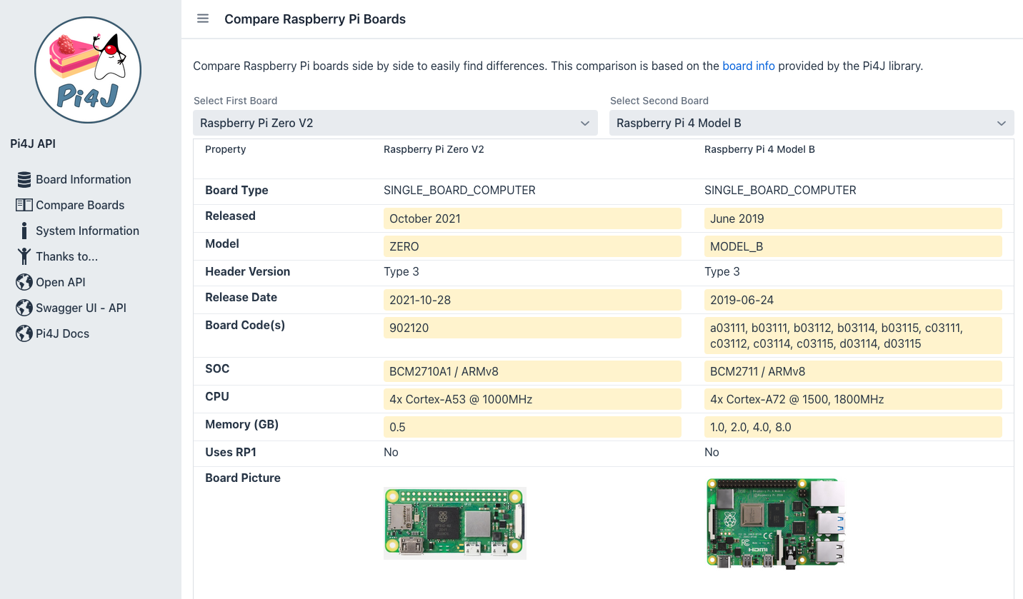 To help identify these kinds of issues that behave differently on different types of Raspberry Pi boards, the Board Info Service has been extended with a Compare view where you can easily see the differences between two boards.